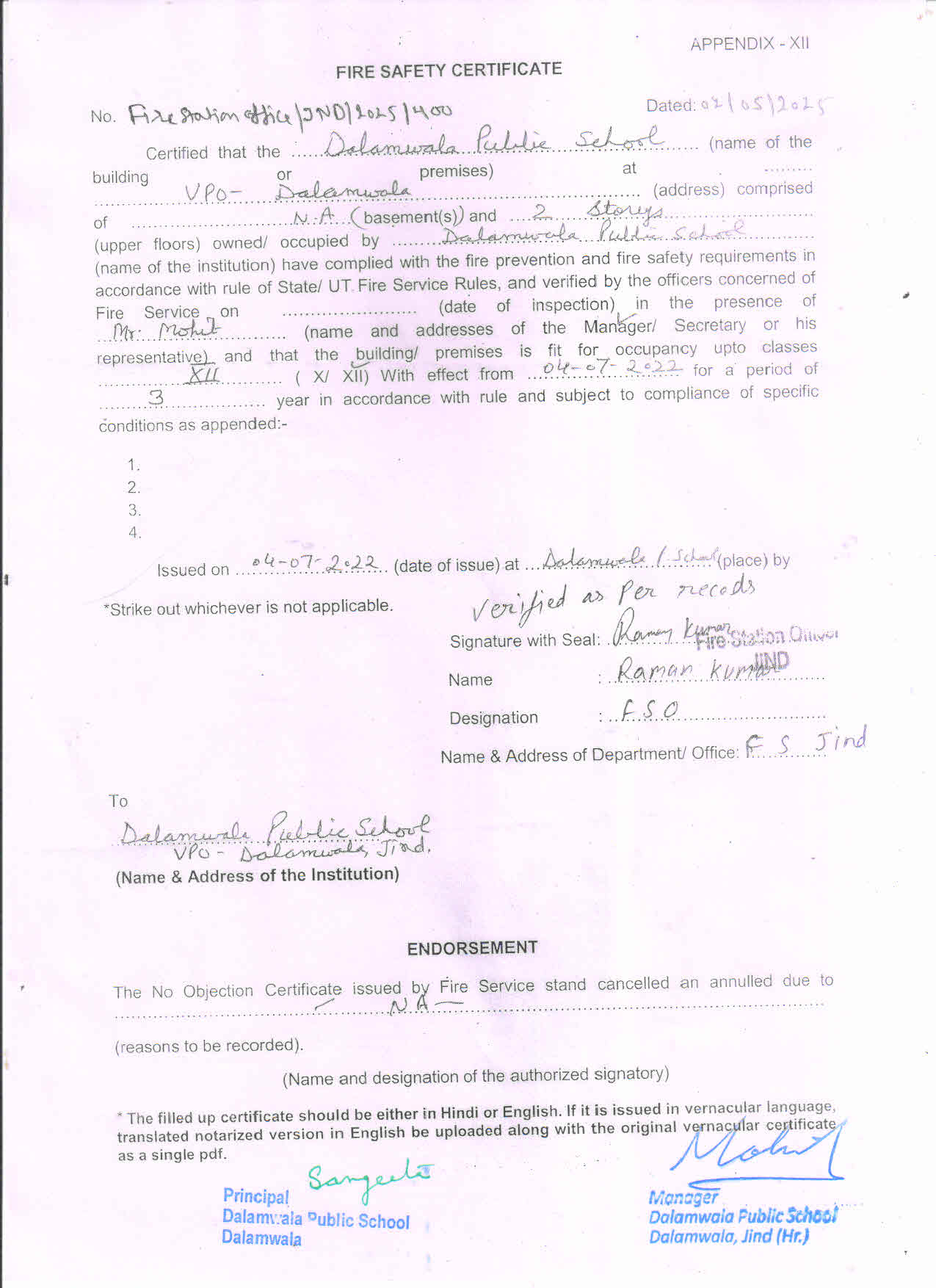 COPY OF VALID FIRE SAFETY CERTIFICATE ISSUED BY THE COMPETENT AUTHORITY
