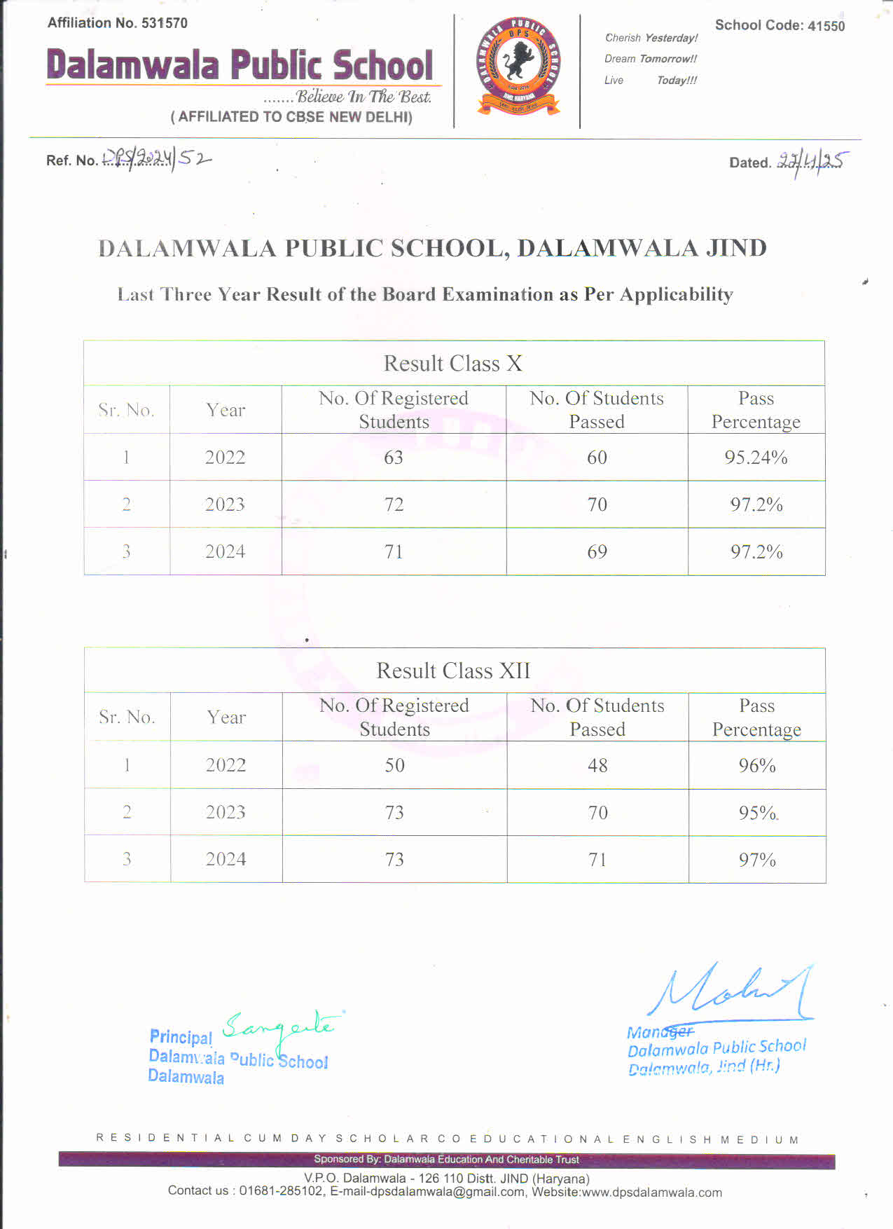 LAST THREE YEARS RESULT OF THE BOARD EXAMINATION